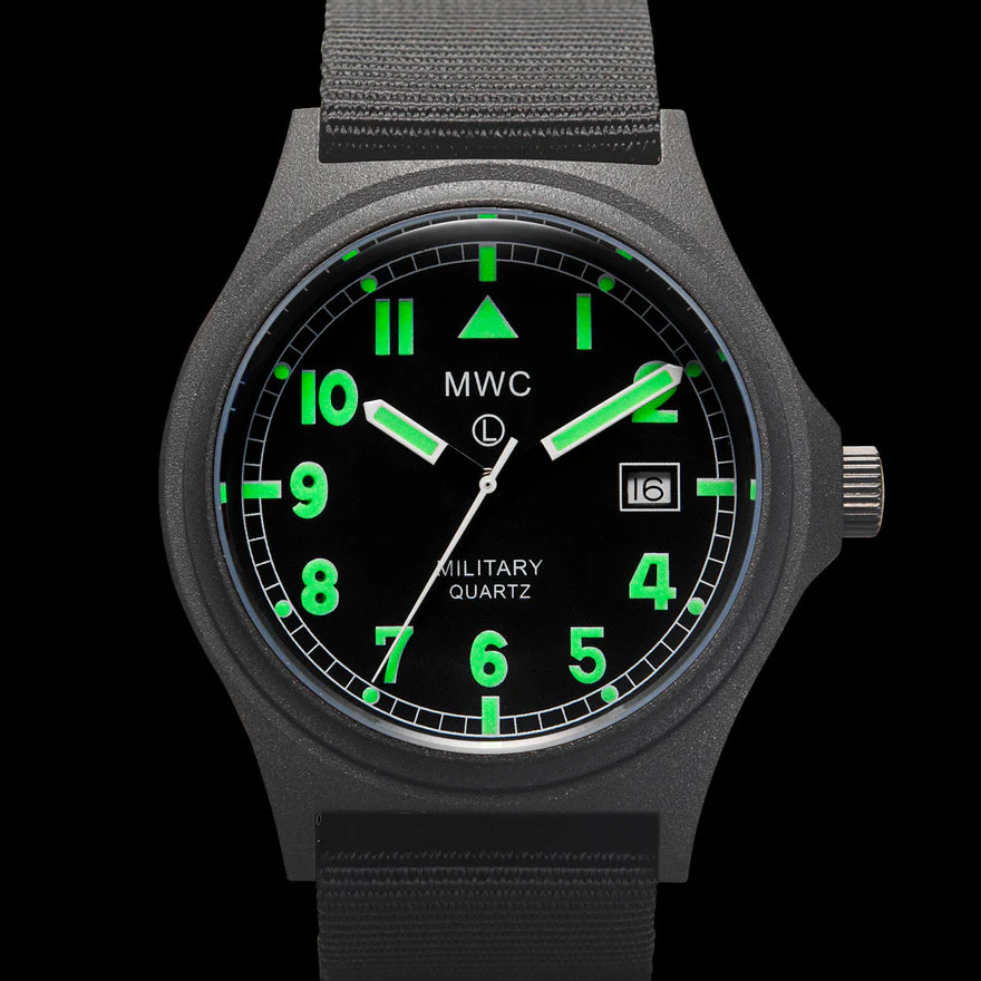 Our PVD plated G10 Stealth model boasts a unique design, combining historical elements with modern enhancements. MWC was the first contractor to produce standard European Infantry specification watches with a non-reflective PVD plated black finish, a feature highly demanded by special forces units. Unlike painted finishes that can fade or rub off, the black finish on this watch is achieved through a chemical PVD plating process that alters the steel's color at a molecular level, ensuring durability even under heavy usage. However, it can be damaged if severely gouged or abraded.