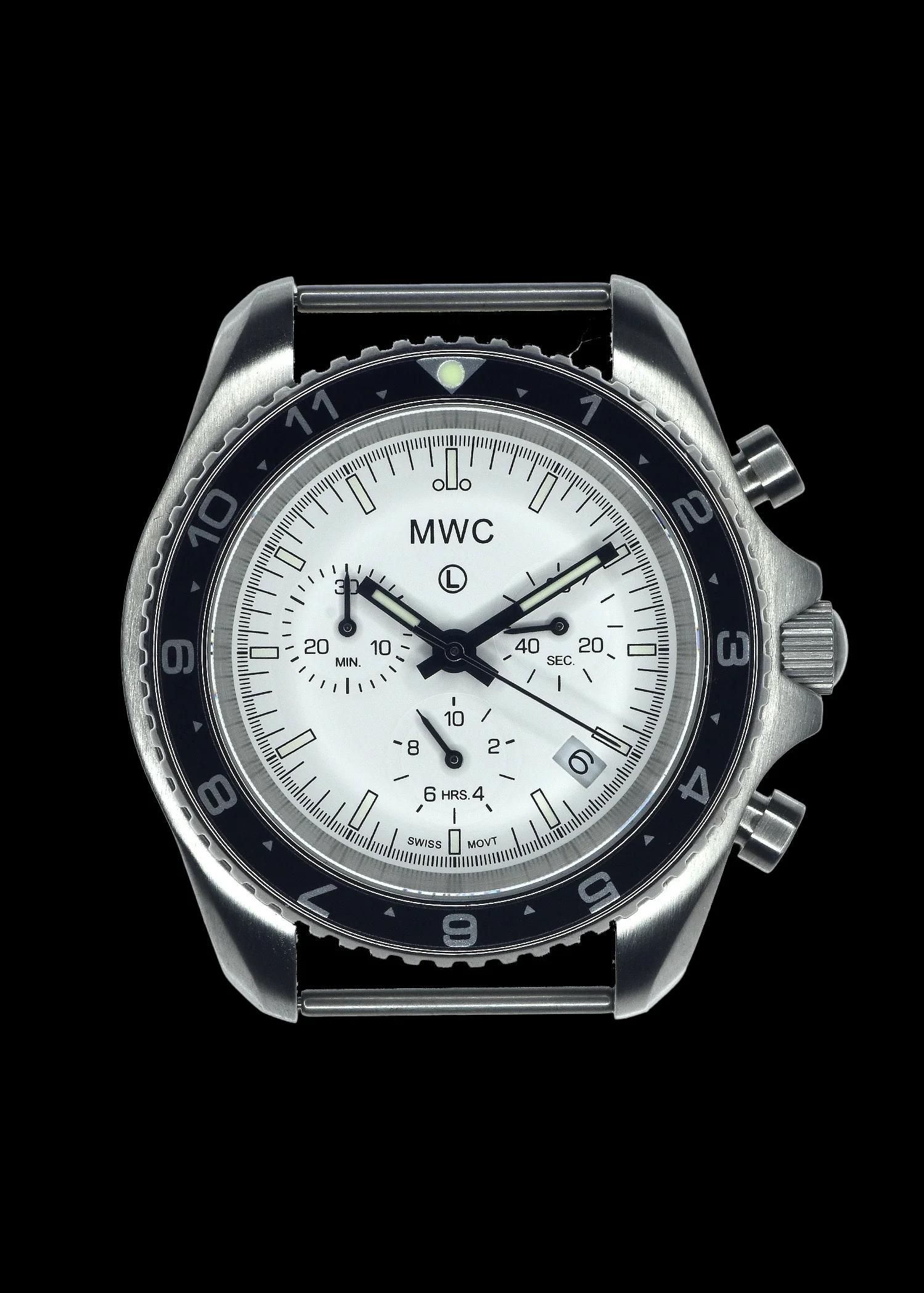 Built for the aviation applications and tough enough for any terrain, the MWC NATO chronograph in stainless steel was developed to meet the demanding needs of military aircrews, commercial pilots, and general aviation professionals. While based on the proven specifications used by other NATO chronograph manufacturers, this model brings several smart upgrades that improve functionality, legibility, and real-world practicality.